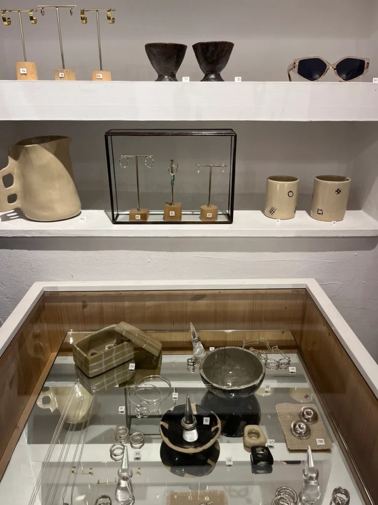 A gift store selling curated local products and a takeaway coffee joint in one, Xiloteca offers specialty coffee from roasters in Zaragoza along with a selection of ceramics, soaps, natural wines, and tinned fish. Founded by partners Alexei Morales and Cameron Rosenbrock, the idea of creating Xiloteca as more of a shop with coffee, rather than a sit-down café was born out of their love for graphic design and beautiful locally crafted products, restrictions on new hospitality businesses in Barcelona’s centre, and a way of safeguarding their business against disruptions like covid.