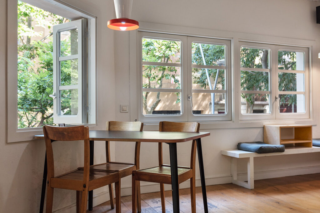 For a cafe/coworking space that’s a little different, head to Skye Coffee Co. in Poblenou, a cafe on wheels parked up within the 88 co-working space serving specialty coffee out of a 1972 Citroen HY that has been converted into a food truck/coffee shop. Offering a breakfast menu of porridge and chia pudding, this minimalist warehouse coworking space is the perfect place to start your workday.