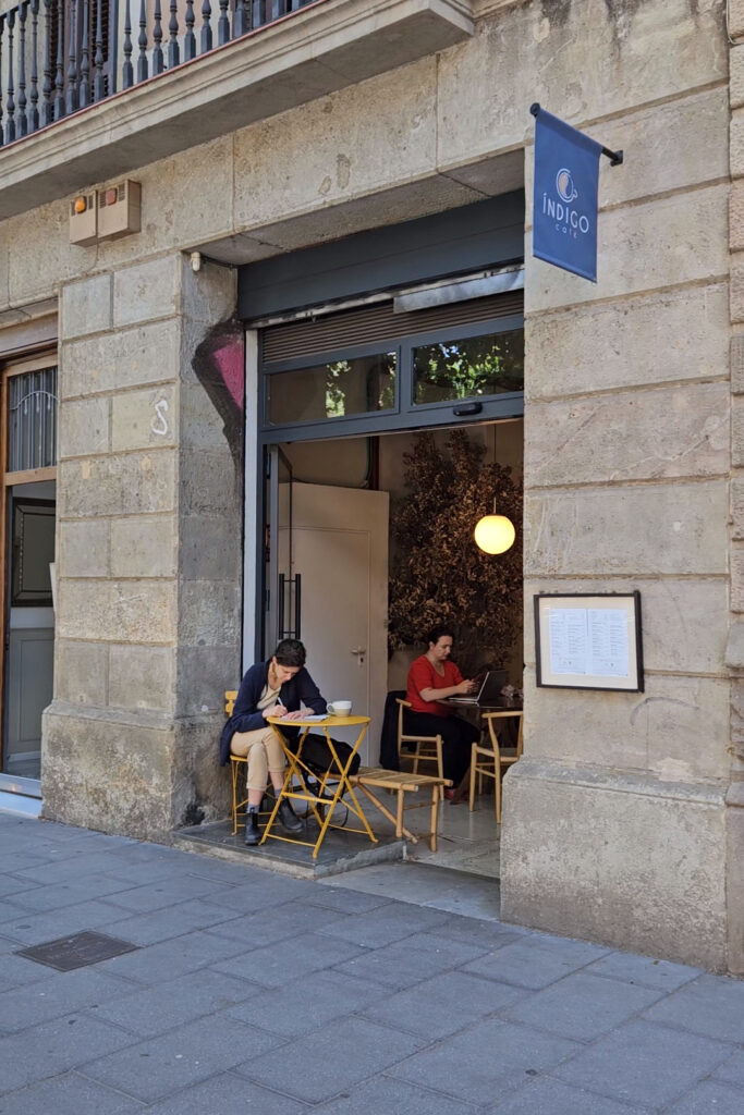 Indigo cafe offers a chilled, laidback space to park up with your laptop and enjoy good coffee (Hidden Coffee), fast wifi, and a range of delicious and decently priced lunch options that are so good! Try the goat’s cheese sandwich or truffed ham grilled cheese (“bikini”) for a tasty meal that will help you power through the afternoon’s work. Pitch up solo on one of the high tables or work with friends at one of the larger shared tables and power through a couple of hours of solid, uninterrupted work. Tucked away in a peaceful, leafy street right by the Universitat metro station, this is definitely one of our favourite cafes to work in Barcelona.