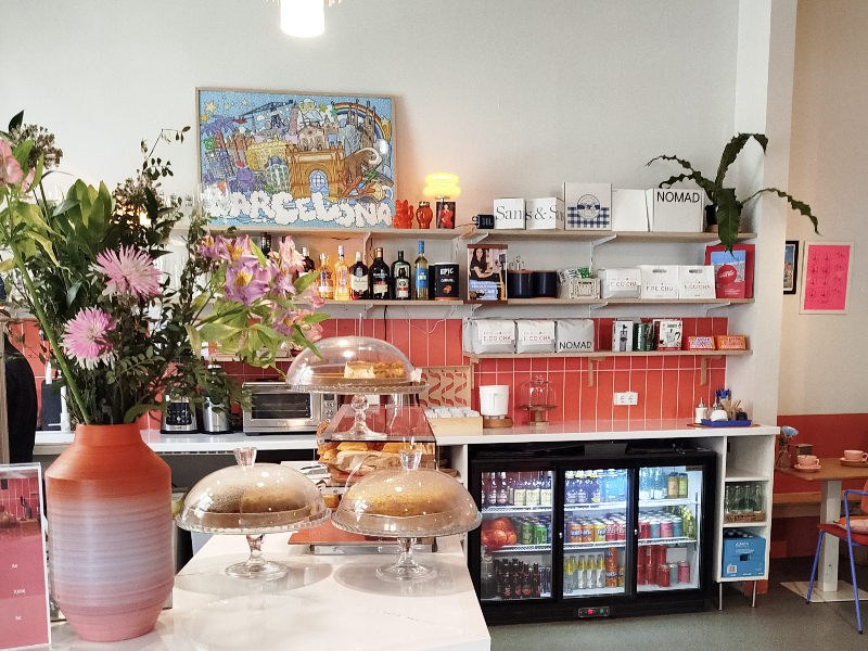 Located near Metro Urgell, El Noa Noa is a spacious and laptop-friendly café in Barcelona with plenty of tables, making it easy to settle in for a couple of hours of focused work. The interior is light and welcoming with a distinctive pink theme, and the buzzing, youthful atmosphere makes it a popular spot for remote workers. Serving Nomad coffee alongside snacks and light bites, it’s a great option when you want to combine good coffee with a productive work session.